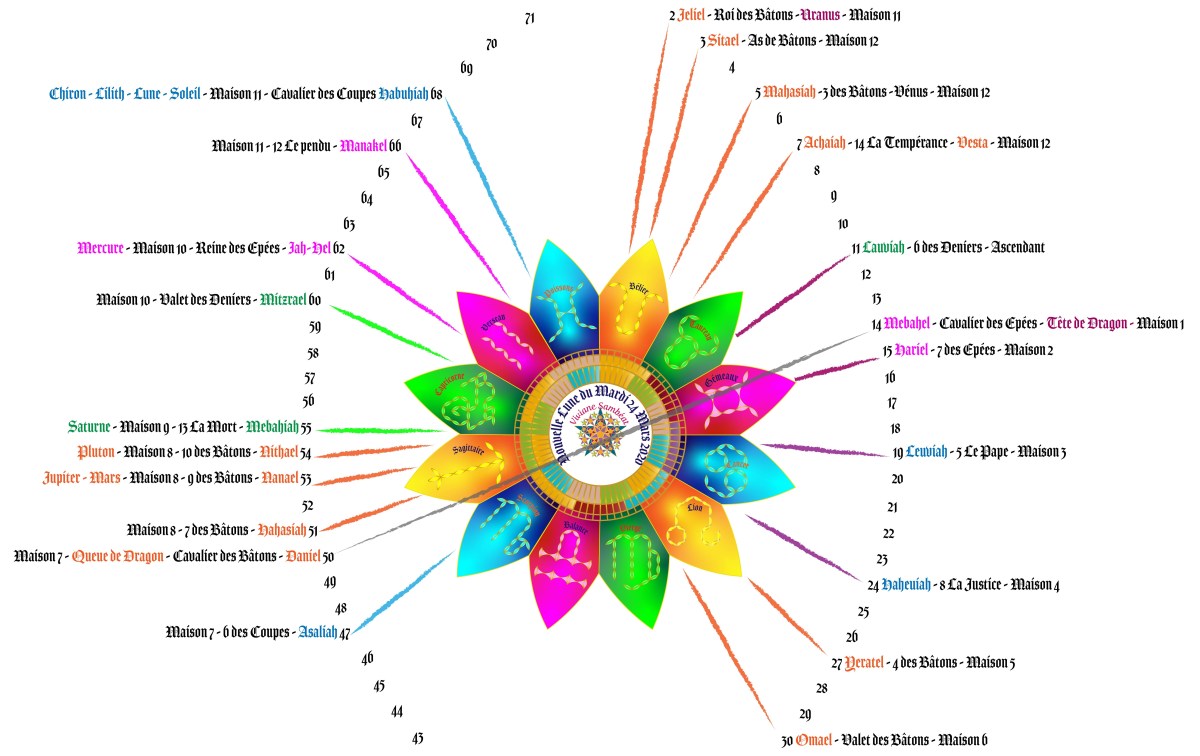 Changement de mode de Calcul, je suis passée du mode Tropical au mode sidéral : 25° de différence qui ajoute une précision étonnante dans la description de la situation actuelle et 68 HABUHIAH est tout à fait d’actualité puisque sa contrepartie s’occupe des épidémies !