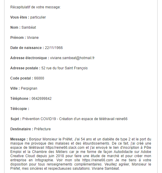 Après les avoir prévenus que j’allais notifier mon espace de télétravail en Préfecture, ils ont enfin compris que j’avais juste besoin de l’adresse mail de la Chambres des Métiers.