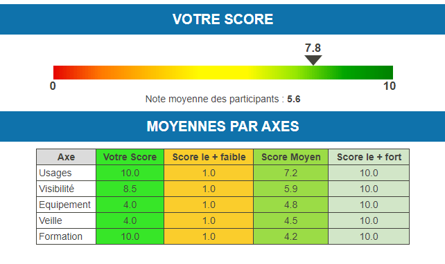 Le résultat de mon MATUDIAG réalisé en ligne sur le site de la Chambre des Métiers avec un résultat de 7.8 sur une moyenne de 5.6 sur 10 (je n’ai pas encore démarré mon inscription vu que je n’ai pas encore des clients et c’est ce que m’a conseillé une employée de l’inspection du travail) :