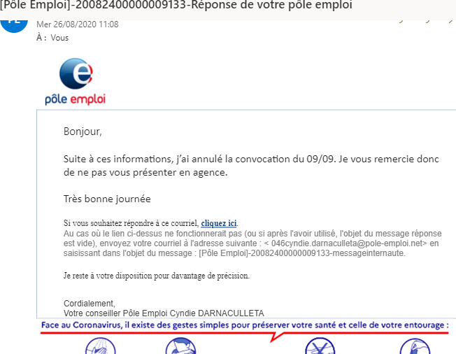 De plus Pôle Emploi est le vecteur des personnes malveillantes qui me spamment ma boite mail avec des offres d’emplois de « mise sous pli ».