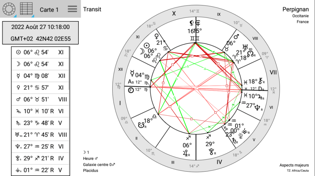 Comme d’habitude voici les régences et les captures d’écran d’Astro Vizor et je prends mon temps pour écrire : je ne fais pas de prévisions mais de l’observation constructive !