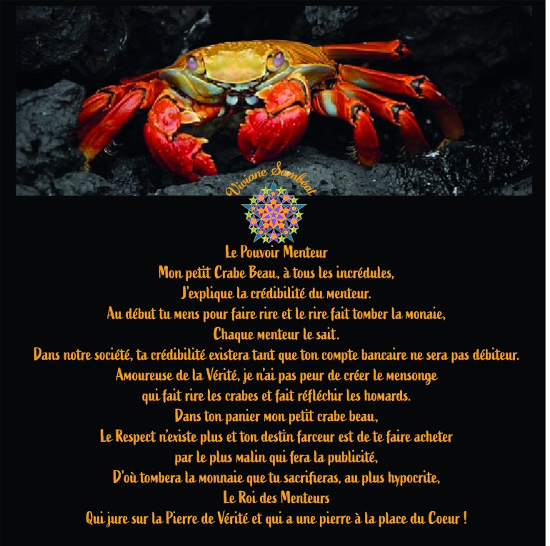“La vérité rebelle, mon petit crabe fou, à tous les naïfs, je dénonce la dangerosité du menteur !