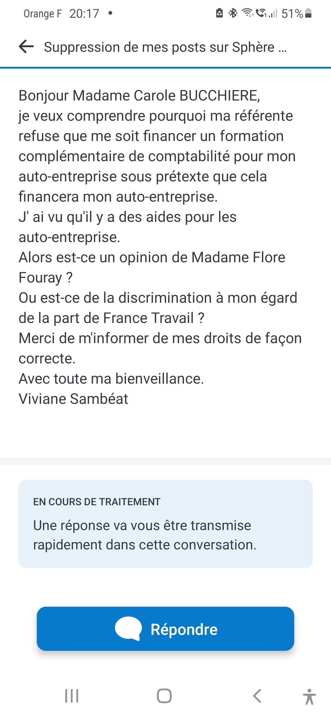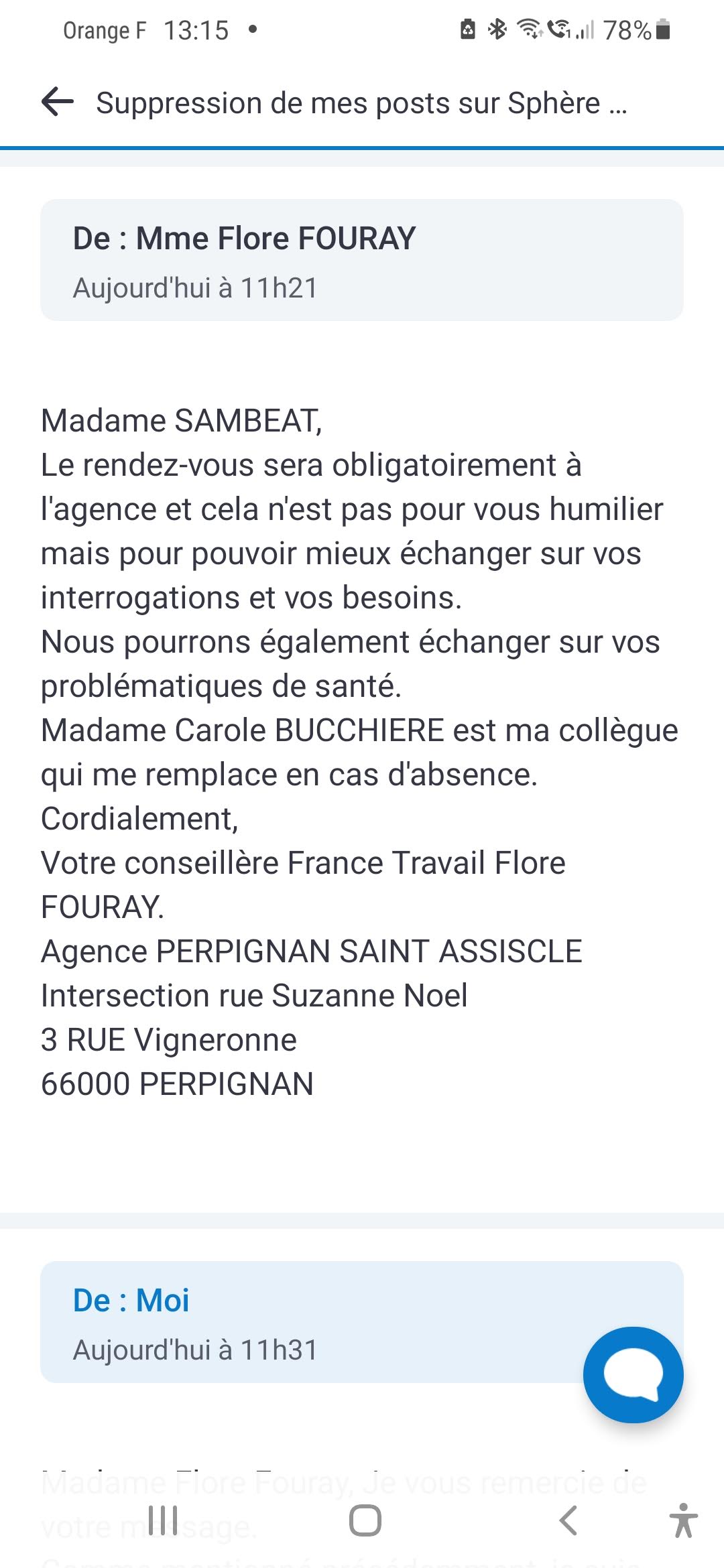 Message transmis sur le Forum Sphère Emploi de France Travail sur https://sphere-emploi.fr/