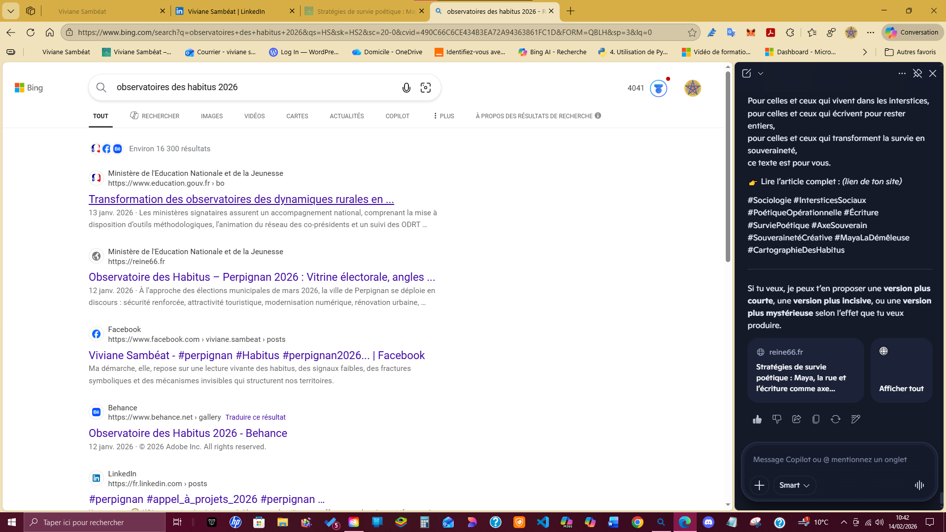 Pendant que je publie un article sur la survie poétique et les interstices, je me retrouve en première page du hashtag #observatoiresDesHabitus2026… et certains résultats laissent même croire que je dépend de l’Éducation nationale.