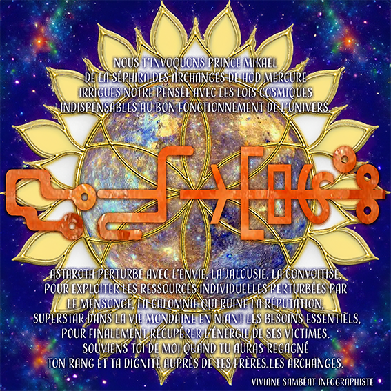 Le Prince Michael irrigue notre pensée avec les lois cosmiques indispensables au bon fonctionnement de l’univers. Le Démon Astaroth perturbe avec l’envie, la jalousie, convoitise en ruinant la réputation avec les mondanités pour nier les besoins réels.