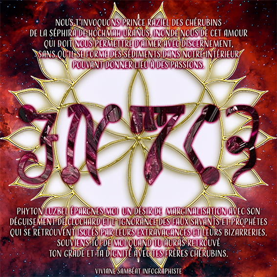 Représenté par le Prince RAZIEL apporte le discernement dans les émotions pour ne pas se perdre dans des passions, le Démon Python-Luzbel nous marginalise, nous tourne vers l’ignorance avec ses faux savants et prophètes extravagants et bizarres.