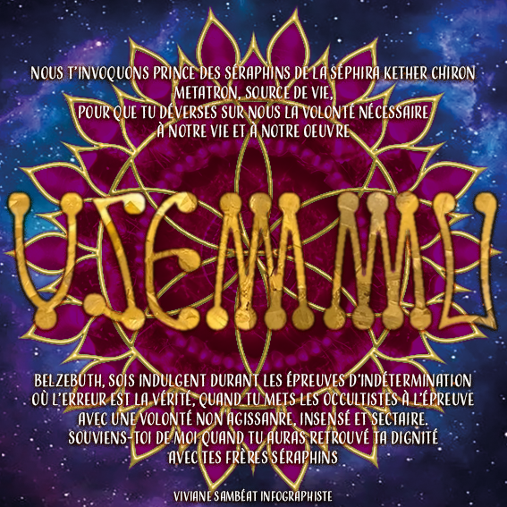 METATRON est le Prince Ange qui active notre volonté, le Démon BELZEBUTH apporte la confusion, les préjugés, le sentiment d’être dans une impasse, surtout ne pas se laisser influencer par la colère au tout début de ce nouveau cycle.