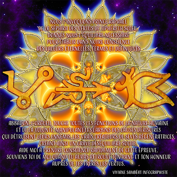Le Démon ABBADON favorise l’orgueil touchant toutes les fonctions de la nature humaine et de la volonté en manipulant les larbins des causes dérisoires ennemis des vrais créateurs de sèves régénératrices, créant un grave déséquilibre social.